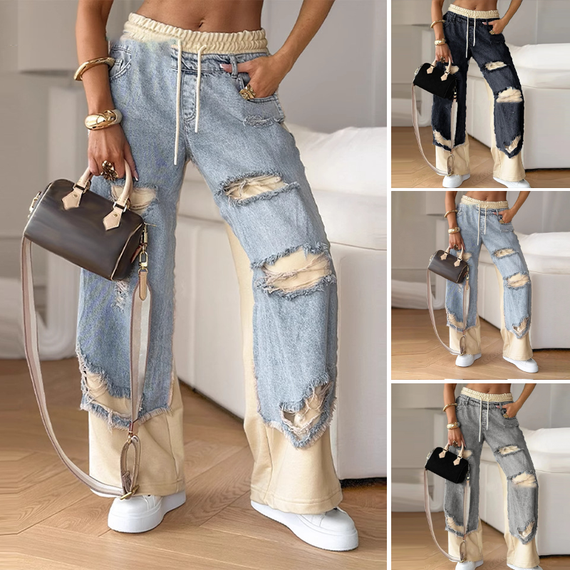 Dwukolorowe jeansy z przetarciami – streetwearowy hit